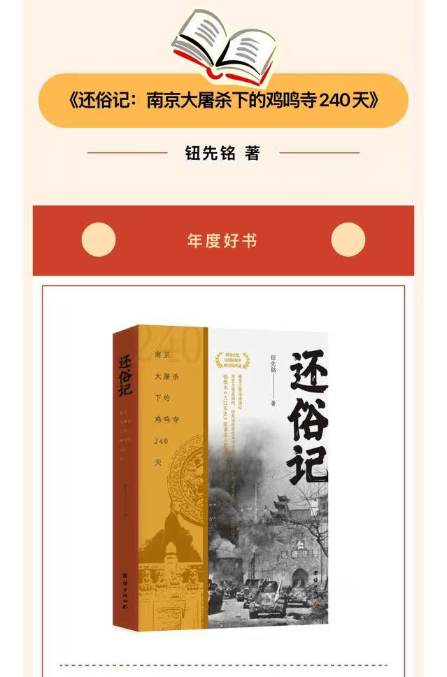 近日,团结出版社正式公布“2025年度十大好书”榜单。由《共工新闻社》文史顾问钮则坚领衔重编的《还俗记:南京大屠杀下的鸡鸣寺240天》成功入选,成为本年度备受瞩目的文史类力作之一。